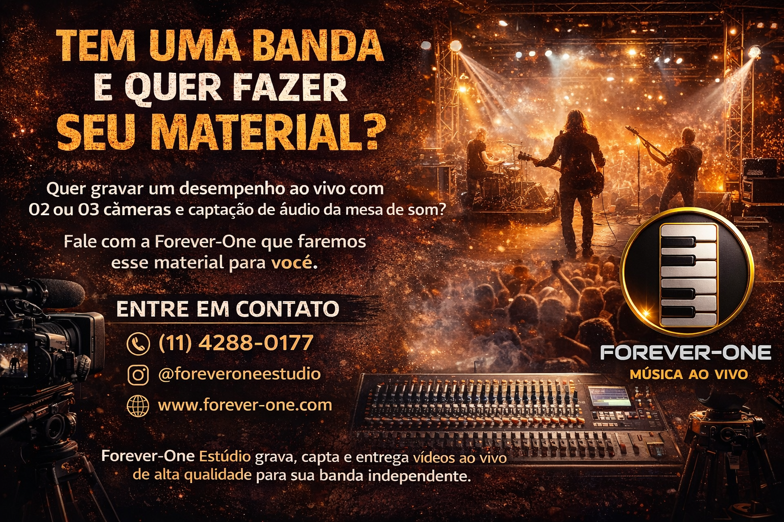 Se você é artista, compositor ou banda independente, a Forever-One oferece soluções completas para tirar seu projeto do papel com qualidade profissional — do áudio ao vídeo.